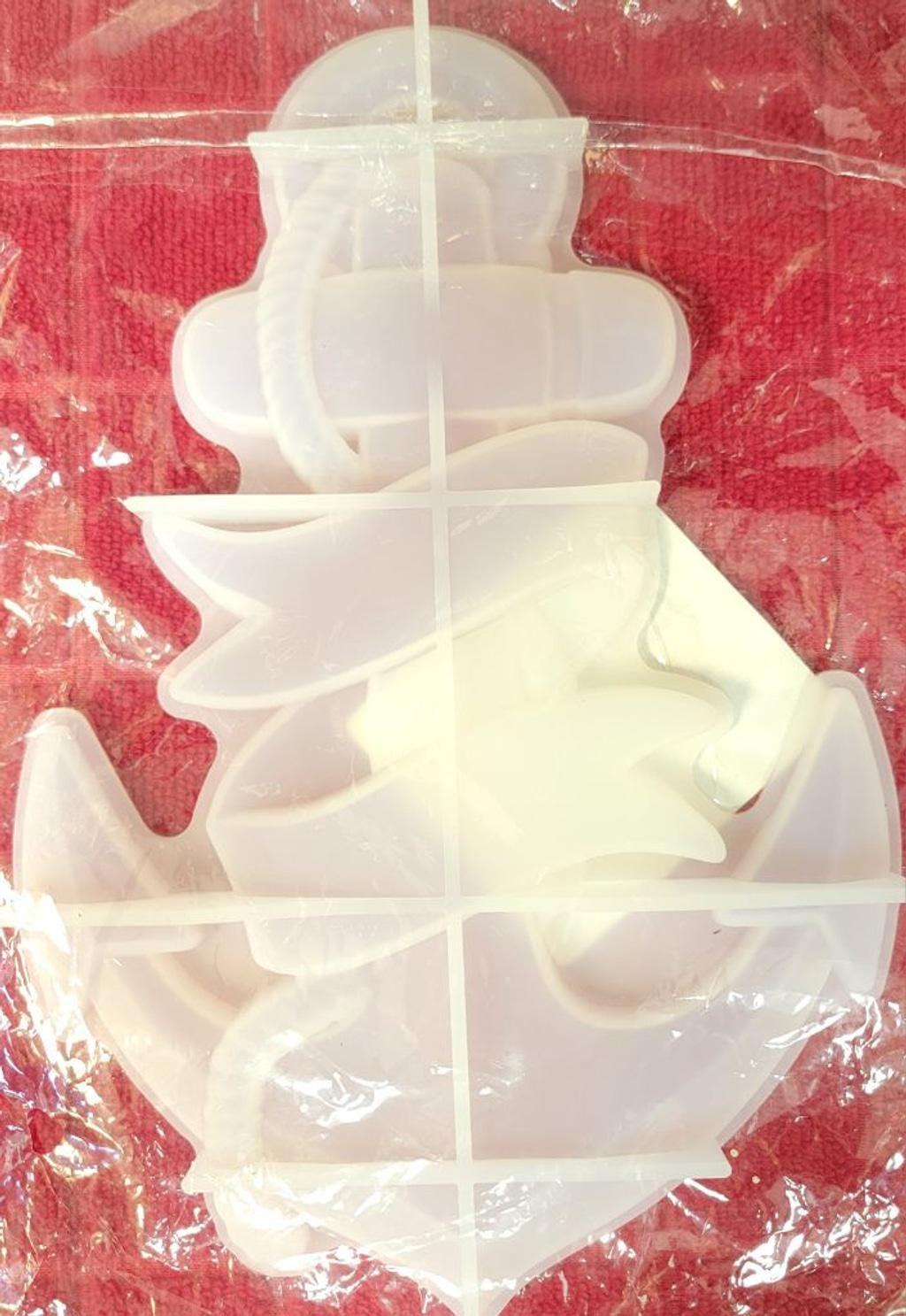 NWT 9"x3.25" white Anchor silicone mold. The mold features a 9" anchor with ribbon and robe wrapped around it. Let your imagination run loose with this fun resin mold.