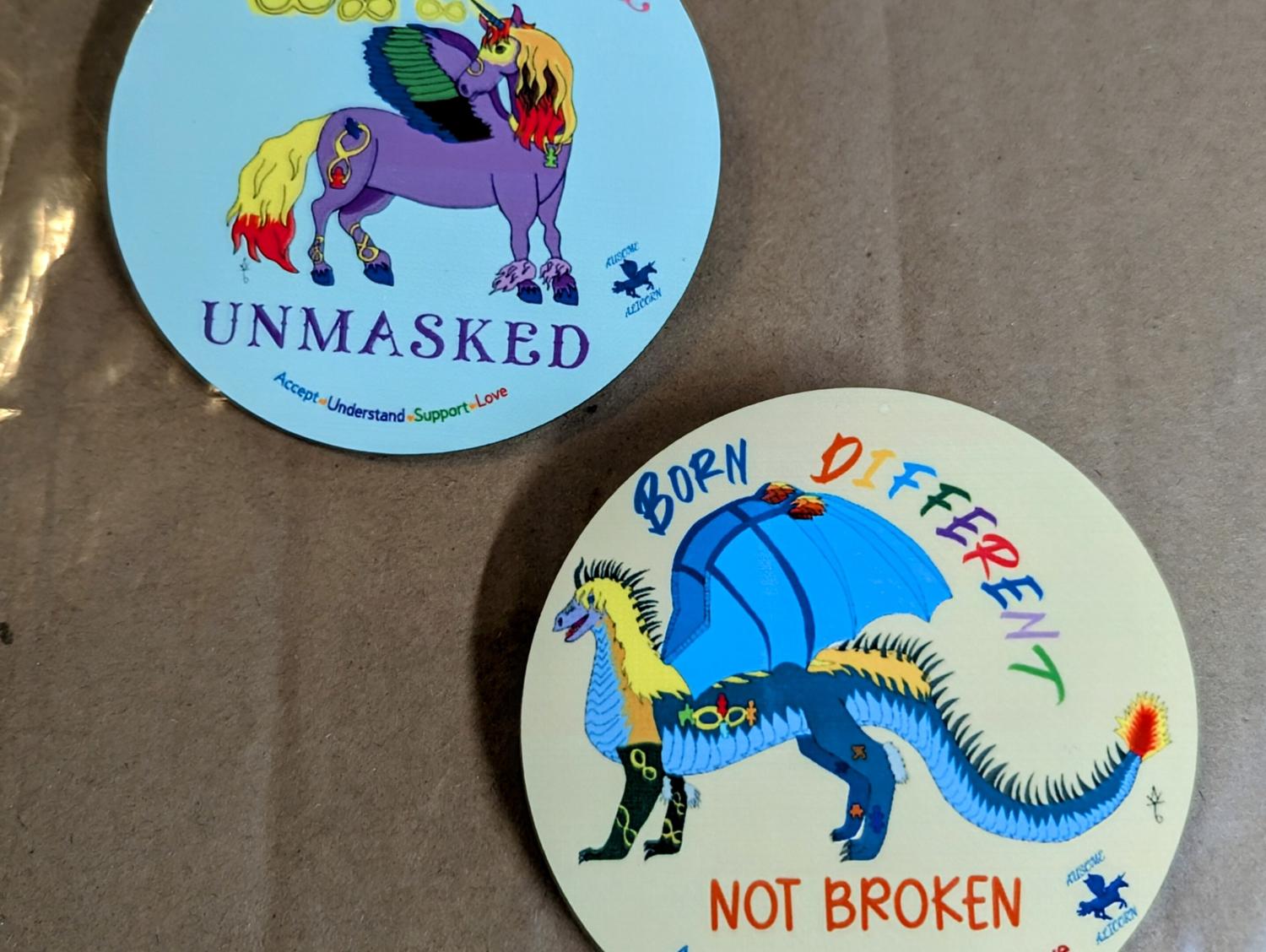 Note about the art from the artist: "Unmasked", the floating infinity symbols represent the removing of the "mask" (Hiding autistic traits) many autistics are asked to wear.