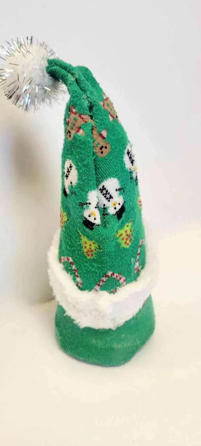 Meet Twinklepine Glitterfrost, a whimsical spirit wrapped in cozy seasonal attire. Bring a touch of holiday cheer and whimsy to your everyday with this handmade cone Christmas gonk gnome. Size: Approximately 9.5" tall from bottom to tip of his pom pom. Hat made from a Christmas themed sock with gingerbread, snowman, Christmas trees, and candy canes, with a sparkly white pom pom. Features: Cone shaped base to add stability and he won't topple over easily. Faux fur beard, trimmed printed hat, and wood nose. Perfect for: Coffee bar decor, Kitchen Shelf Sitter, Tiered tray collection, Christmas Gift for Coffee Lovers, Rustic Home Decor. Care: Light dusting. Not intended for outdoor use Or as a toy. Ships same day or within 1 business day