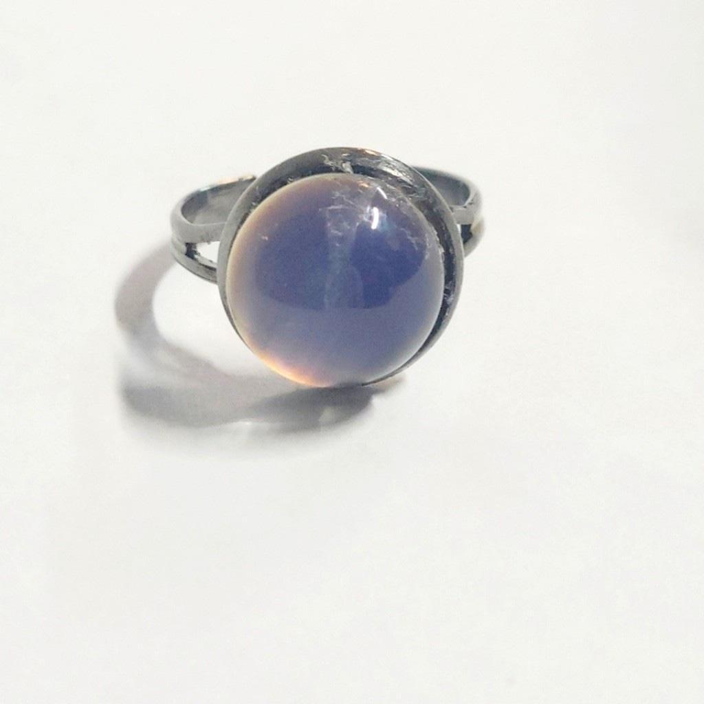 Hand crafted 12 mm color changing mood rings on a gun black metal adjustable band. Fits ring sizes 6.5-7.5 best.