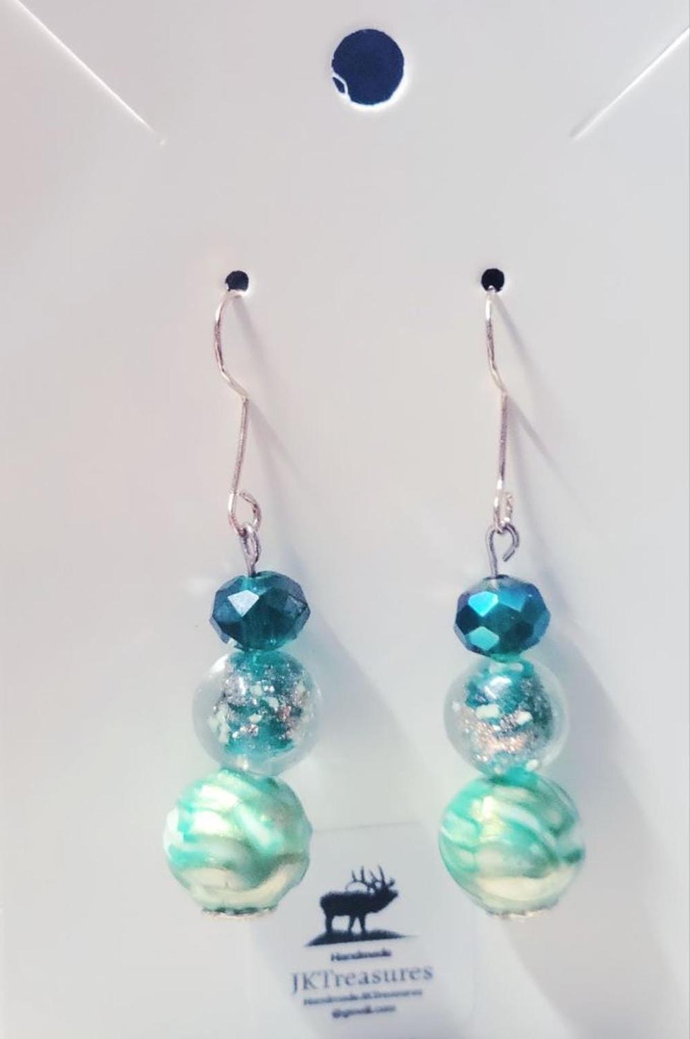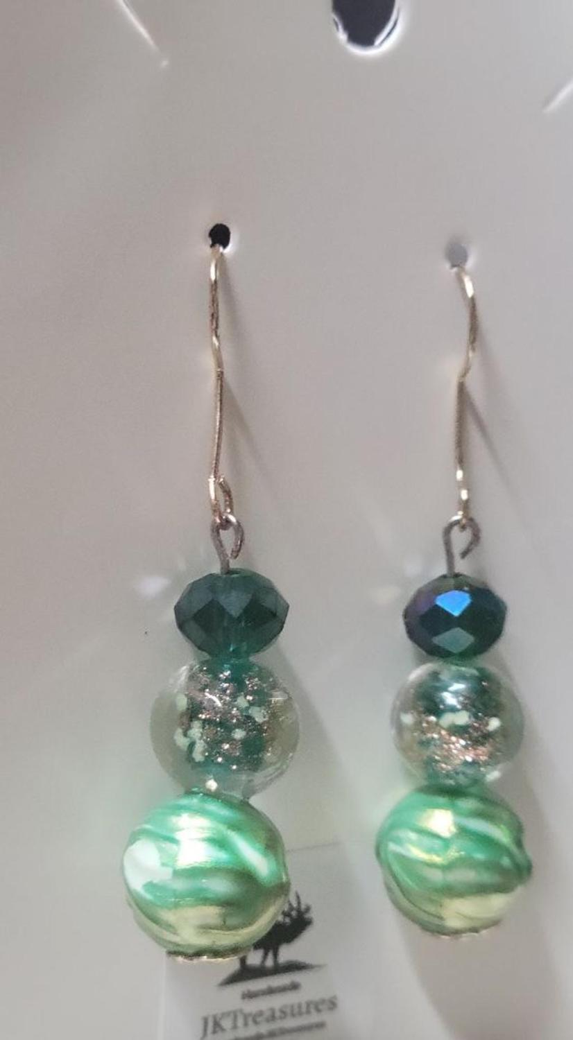 • Elegant Design: HandmadeJKTreasures presents these exquisite gold tone hook drop earrings. Crafted from high-quality materials, they feature multi-faceted green beads, clear, green, and gold glass beads, along with a green and gold swirled glass bead. A dainty gold tone bead end cap adds a touch of sophistication. • Dimensions: These earrings measure approximately 1" in length. Perfect for those who appreciate subtle yet stylish accessories. The combination of green and gold hues creates a harmonious look that complements various outfits. • Craftsmanship: Each piece is meticulously handcrafted, ensuring durability and aesthetic appeal. Ideal for adding a touch of elegance to your jewelry collection. Enjoy the beauty of handcrafted jewelry with HandmadeJKTreasures.