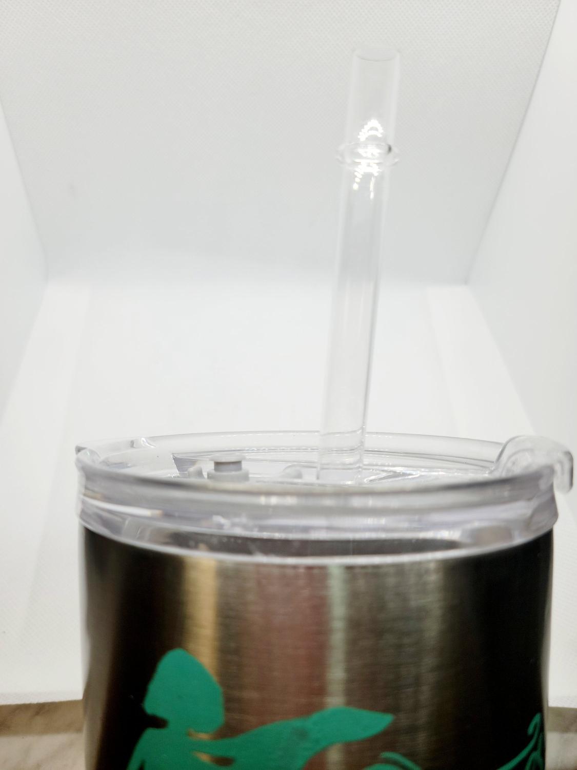 Handpainted "Super Mom" in aqua paint, on a stainlesssteel, 27 oz tumbler, with a lid and straw. Handwash only and not microwave safe. The lid is brand new, but upon further inspection, there are some light scratches, and the rubber seal shows some damage, but the seal still works perfectly.