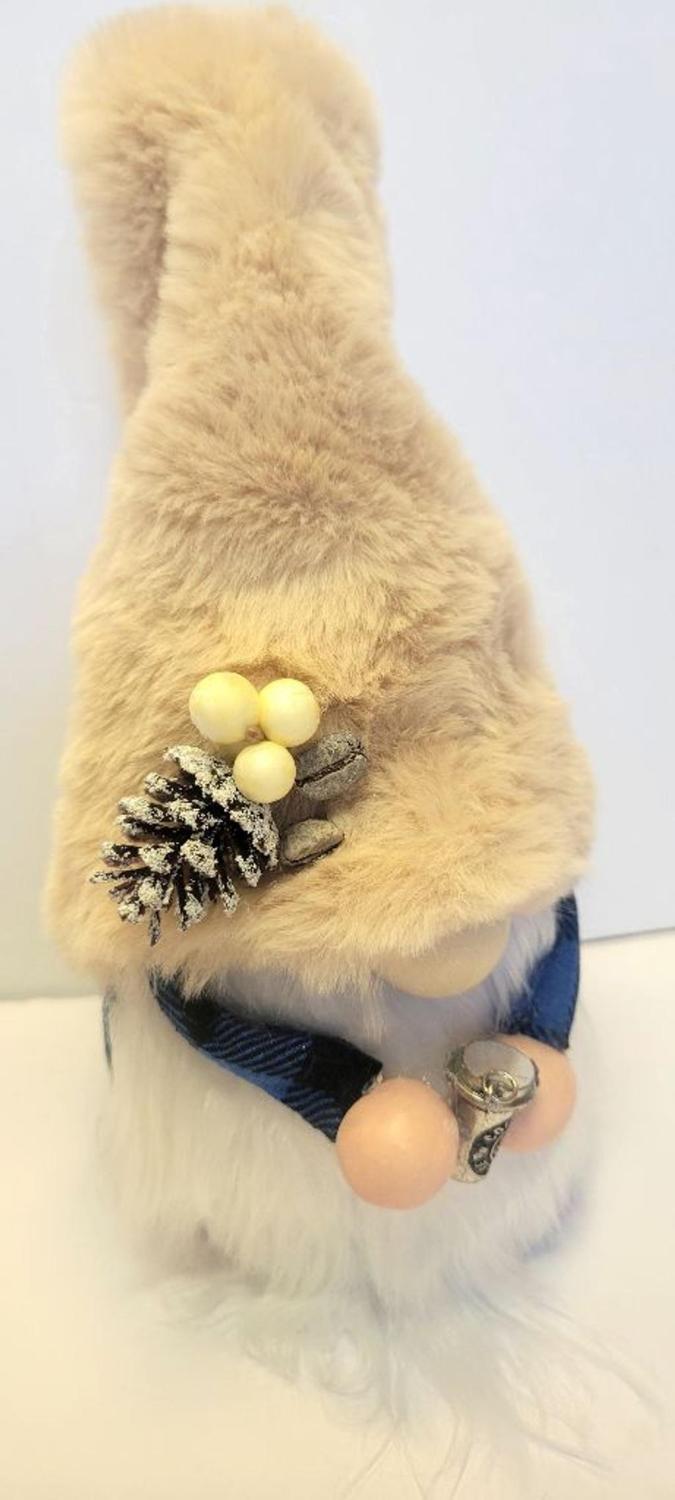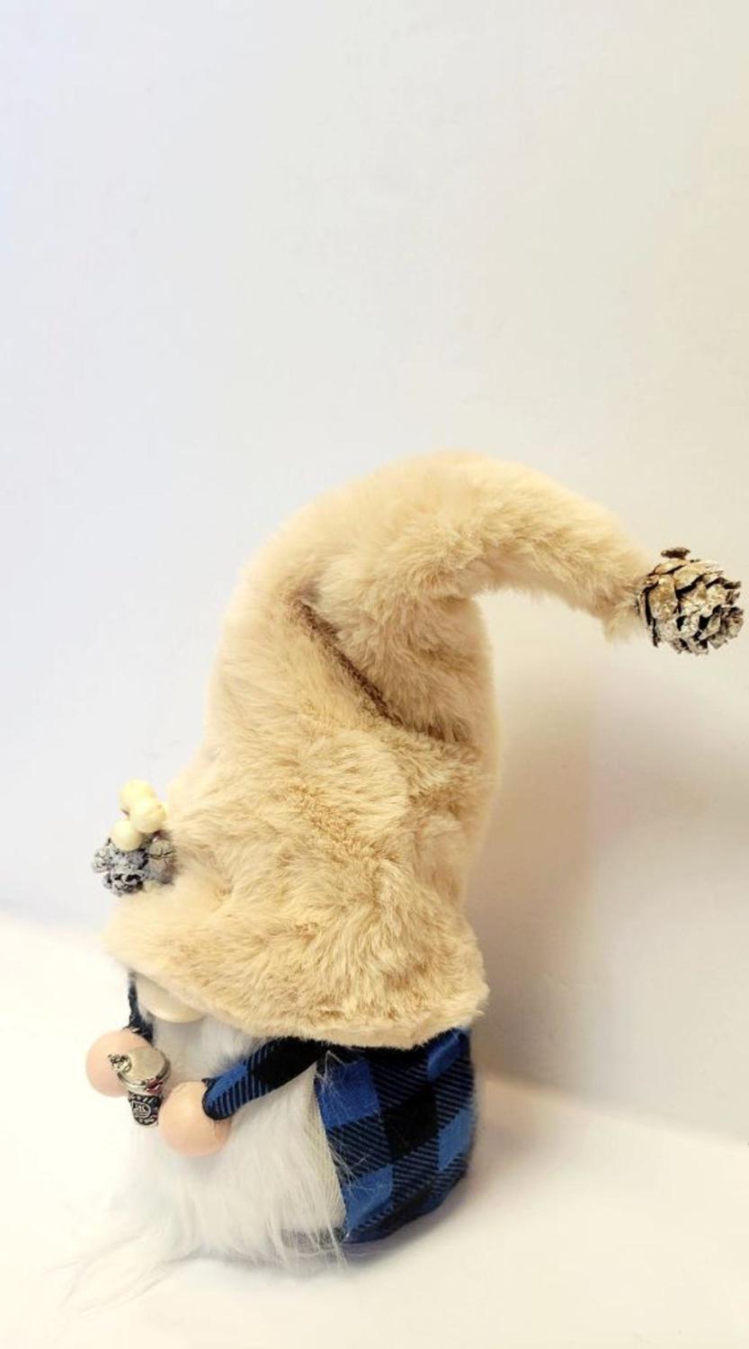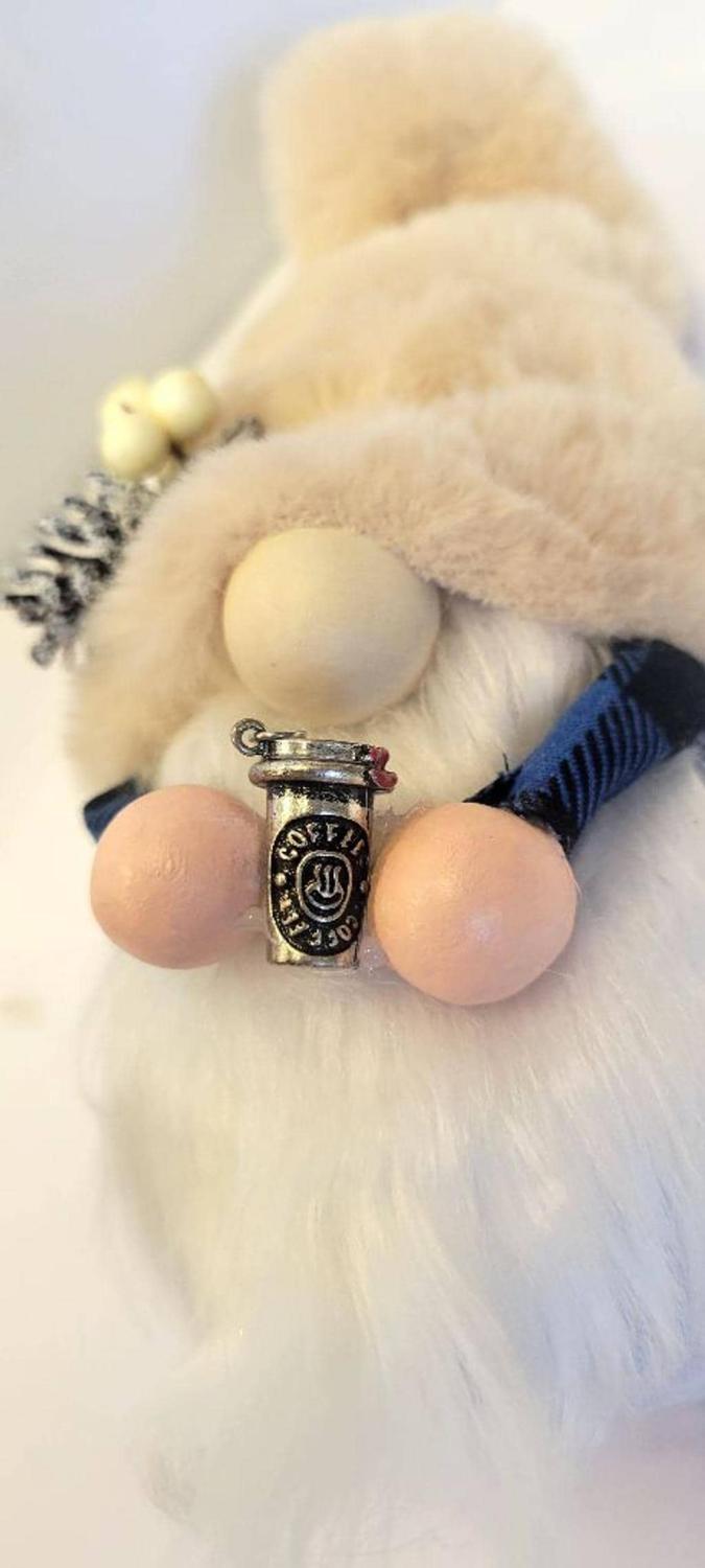 Meet Javaleaf Mochafoot, a quirky gnome fueled by roasted bean energy. Start your mornings with a smile! This adorable, one-of-a-kind coffee-themed gnome is the perfect accent piece for your cozy kitchen, coffee bar, or tiered tray, bringing warmth and whimsy to your routine. Size: Approx. 11.5” tall (from bottom to top of hat point). Ultra-Luxe Hat: Custom hat crafted with rare, soft Faux Bunny Fur for a truly premium feel. Features a tiny metal coffee cup. Weighted Base: Stuffed with weighted material to sit perfectly on any shelf without tipping over. Unique Accents: Adorned with pinecones, Christmas coffee beans, and snow-dusted berries for a rustic, cozy aesthetic. Fabric: Hat is finished with a rustic flannel top. Perfect For: Coffee Bar Décor, Kitchen Shelf Sitter, Tiered tray collection, Christmas Gift for Coffee Lovers, Rustic Home Décor. Care: Light dusting. Not intended for outdoor use Or as a toy. Ships same day or within 1 business day