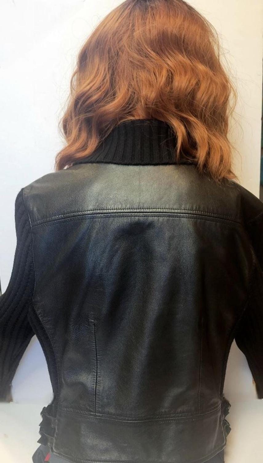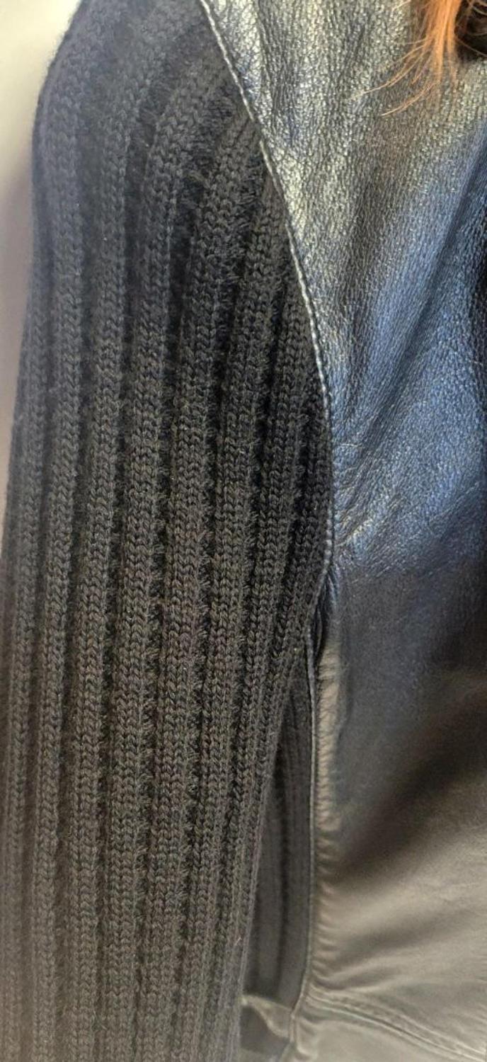 RARE Vintage Carlisle Black 100% Leather Moto Jacket Ribbed Wool Knit Detail